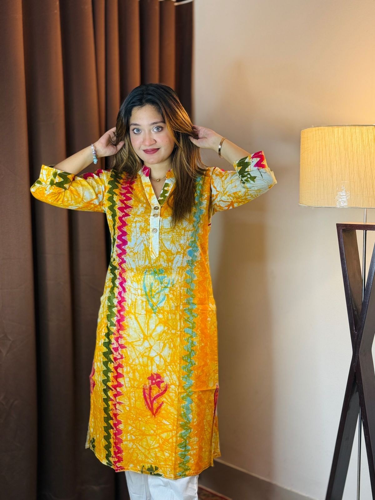 আপনার পোশাকের কালেকশনে যোগ করুন রঙের ছোঁয়া 💖 — এই সুন্দর বাটিক ডিজাইনগুলো যেকোনো ক্যাজুয়াল দিন, উৎসব বা বিশেষ মুহূর্তে আপনাকে দেবে আলাদা আত্মবিশ্বাস ও স্টাইল। 🌼