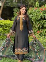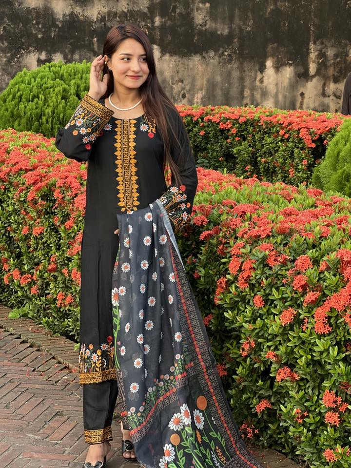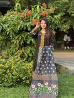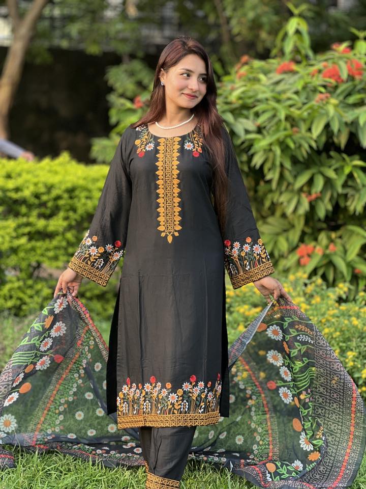 এই মনোমুগ্ধকর ব্ল্যাক এমব্রয়ডারি সেলোয়ার কামিজটি তৈরি হয়েছে নিখুঁত যত্নে। গলার অংশ ও হাতায় সূক্ষ্ম কারুকাজের সঙ্গে ফুলের ডিজাইন একে দিয়েছে এক অনন্য সৌন্দর্য। 💐