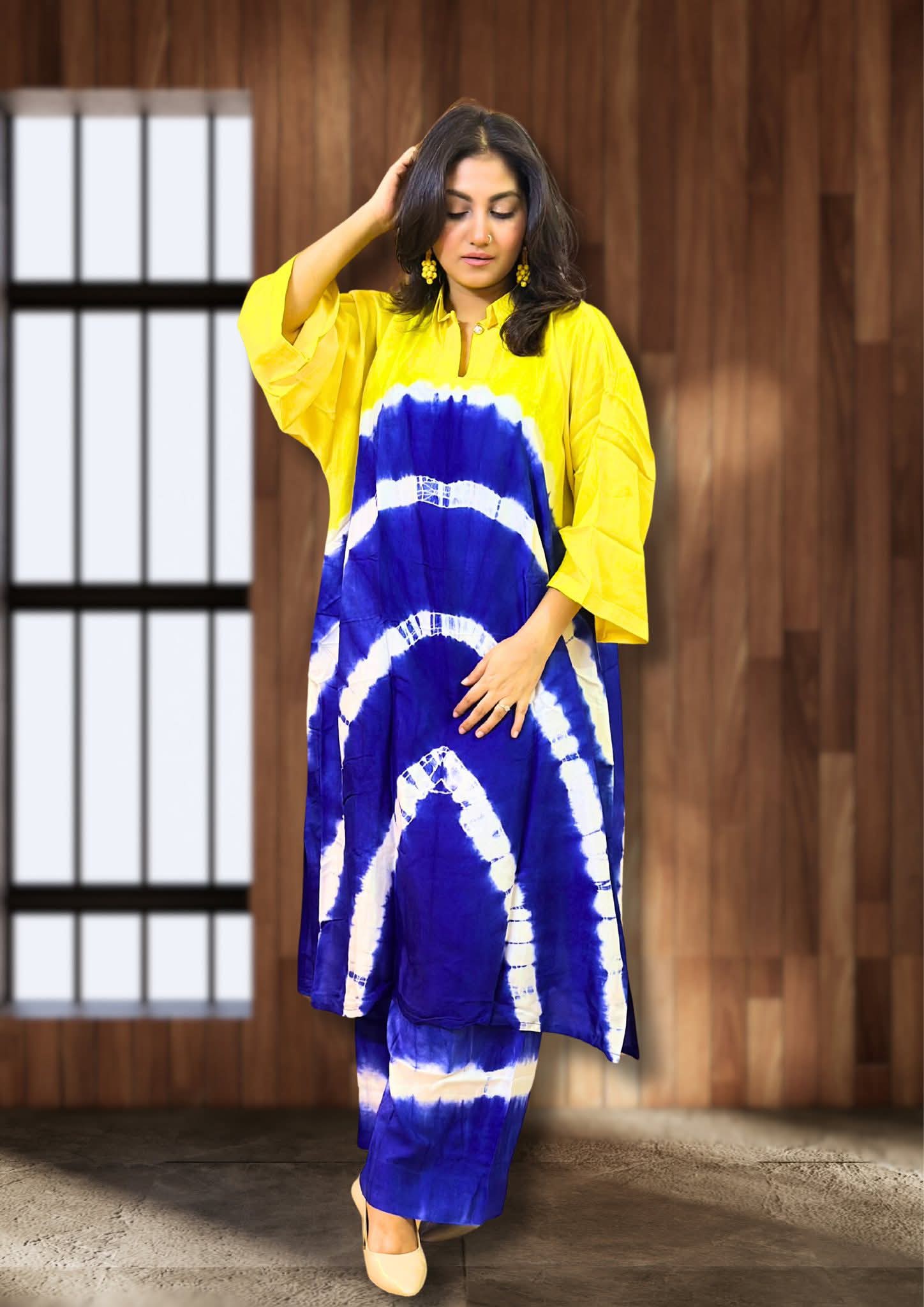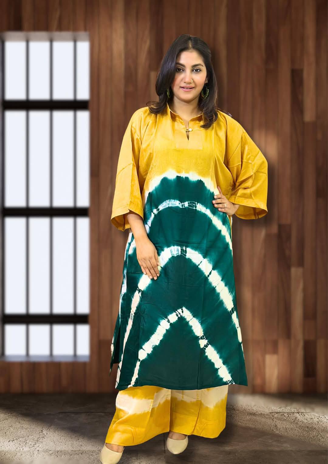 উজ্জ্বল কালার মনোমুগ্ধকর সংমিশ্রণে তৈরি এই টাই-ডাই টু পিসটি আপনার লুকে যোগ করবে ট্রেন্ডি ও কনফিডেন্ট ছোঁয়া। ✨